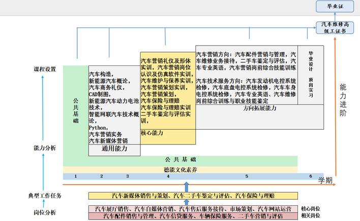 汽车展厅销售 汽车自媒体营销 汽车售后服务接待 市场策划 汽车网站运营 汽车配件销售与管理 汽车信贷服务 车辆保险服务 二手车营销与评估 |