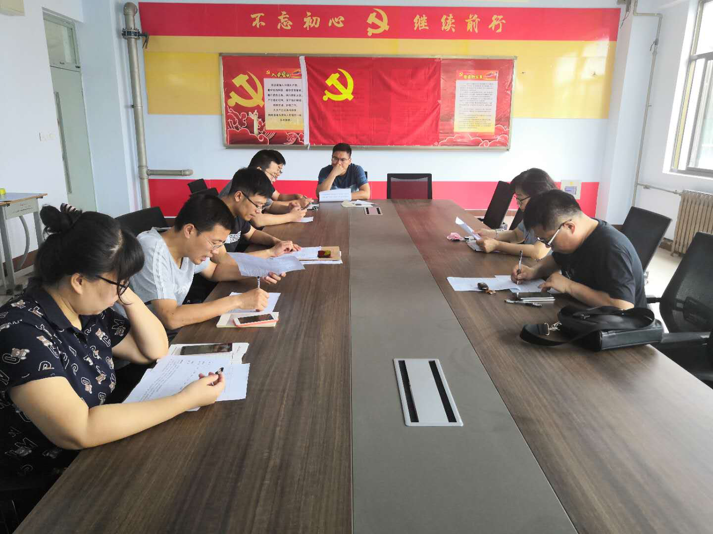 其次,牟海东同志分别从思想、政治、工作等方面向第一党支部党员对以下九名备选人进行个人情况说明(吕小良、赵晋甫、王子鹏、王跃、李森、贾宗齐、林庆悦、张建超、杨坤)。