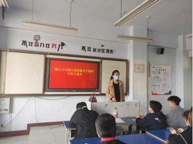 授课人季丽华老师,要求第37期入党积极分子要全面发展,要起好模范带头作用,带动身边的同学积极学习强国,珍惜韶华,努力学习,争创佳绩,为实现中华民族的伟大复兴而奋斗!