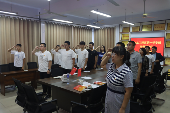活动伊始,第一党支部党员们以及2021上半年预备党员进行现场签到,并奏唱国歌。随后在邵玉霞同志的领誓下重温入党誓词,重忆入党初心。