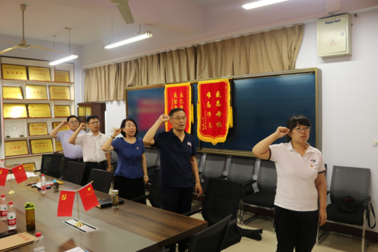 活动伊始,第一党支部党员们以及2021上半年预备党员进行现场签到,并奏唱国歌。随后在邵玉霞同志的领誓下重温入党誓词,重忆入党初心。
