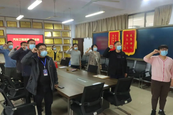 活动伊始,第一党支部党员们进行现场签到,并奏唱国歌。随后在邵玉霞同志的领誓下重温入党誓词,重忆入党初心。
