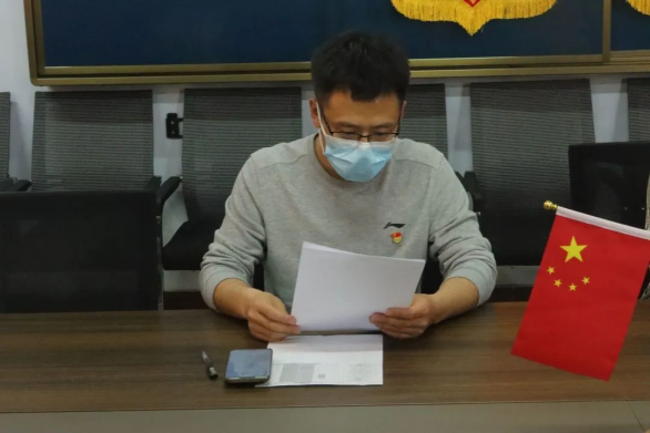 王猛同志宣读健康指南及学校复学条件等七个学校集中抗疫的有关资料和上级要求。使党员同志进一步了解学校新冠疫情的相关工作。