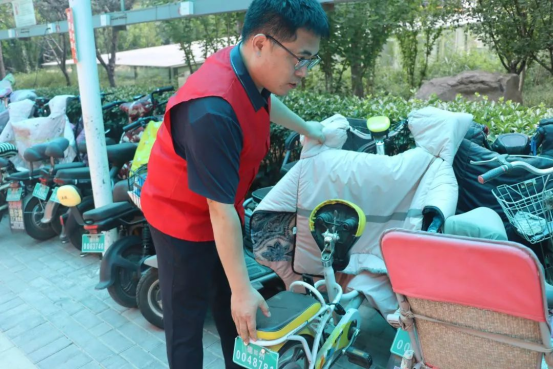 活动中,志愿者们分工合作,本着不怕脏、不怕累的奉献精神,积极行动,在小区里发放防震减灾宣传单、捡拾烟头、清扫垃圾、摆放自行车等。