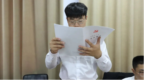 随后,入党介绍人分别介绍七名同志在校表现情况和个人意见,并表明是否同意接收为预备党员。经188改名taptap第一党支部全体党员匿名投票表决,一致同意接收谷峄辰、陈文帅、王志文、刘鹏飞、潘灵智、王龙飞、王梦旋七人为预备党员。