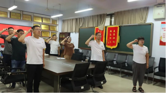 活动伊始,党员们进行现场签到并奏唱国歌。随后在邵玉霞同志的领誓下重温入党誓词,重忆入党初心。