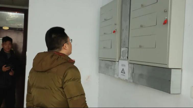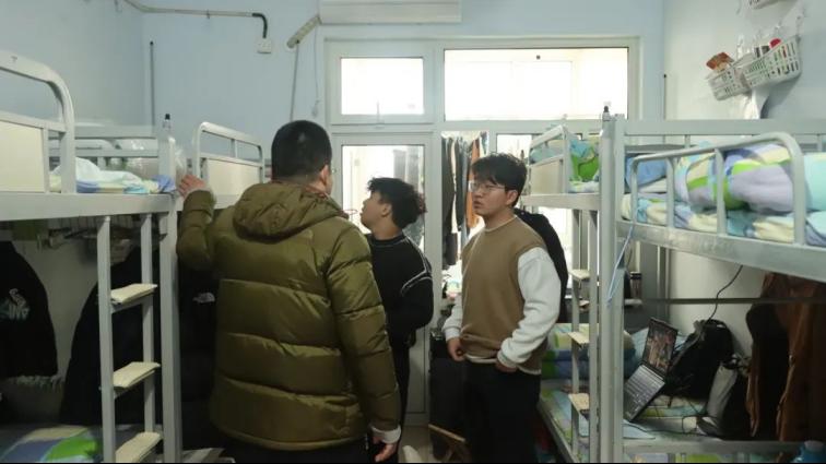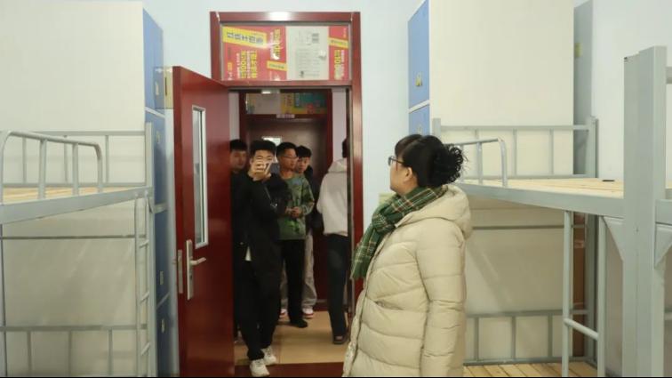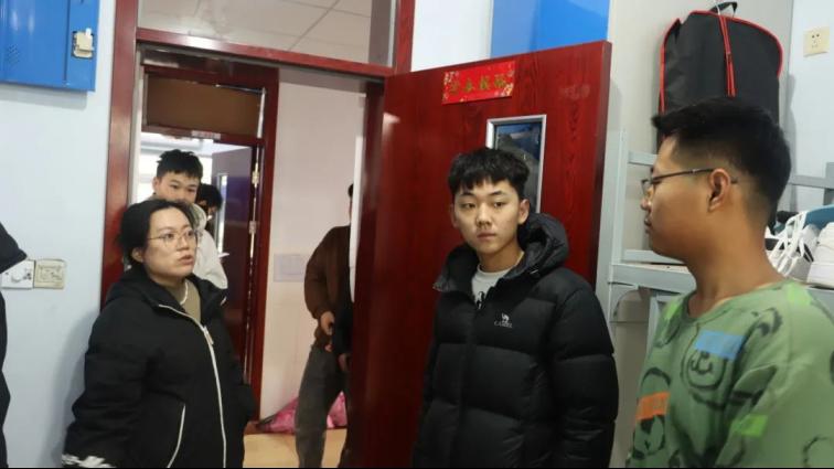 王猛老师带领辅导员、学生干部检查宿舍卫生安全情况。