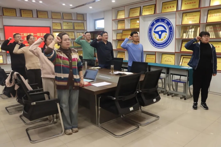 活动伊始,第一党支部的全体党员进行签到并奏唱国歌,随后在邵玉霞同志的领誓下重温入党誓词。