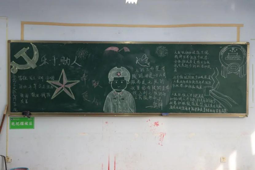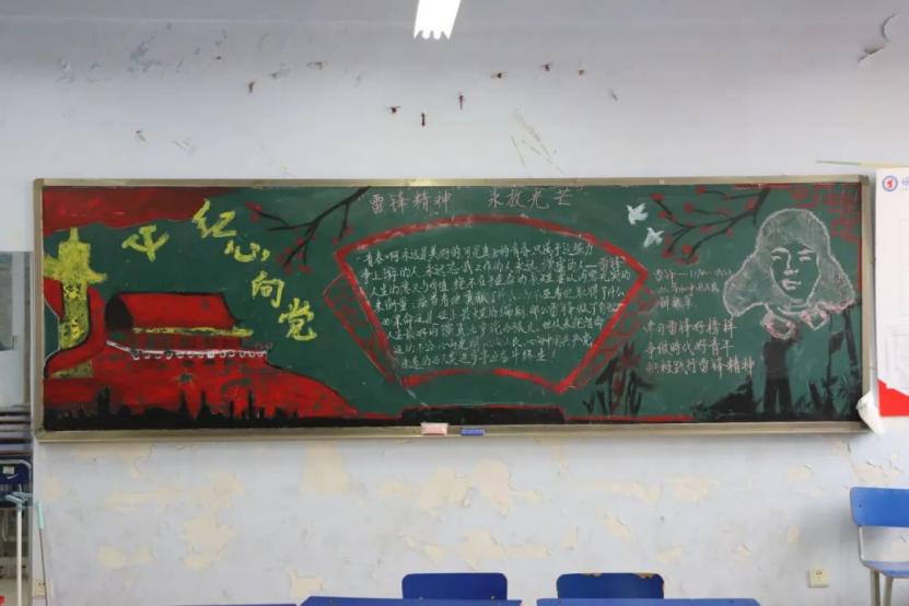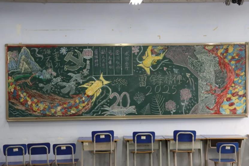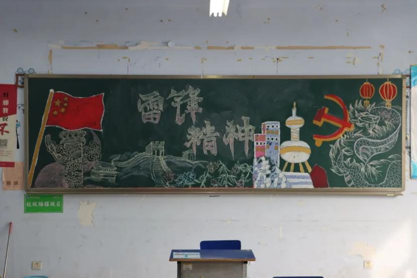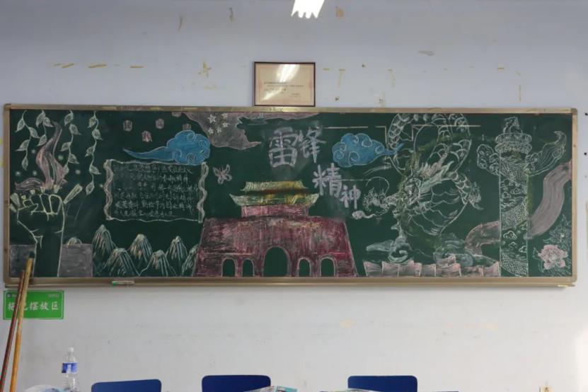 各班团支部积极响应,精心创作,用笔墨勾勒雷锋精神的时代风貌,打造生动的德育课堂,让雷锋精神以可视化、艺术化的方式深入人心,当粉笔画卷遇见红色基因,方寸黑板承载的不仅是艺术创意,更是青春向党的炽热初心。