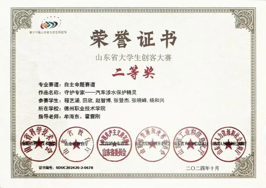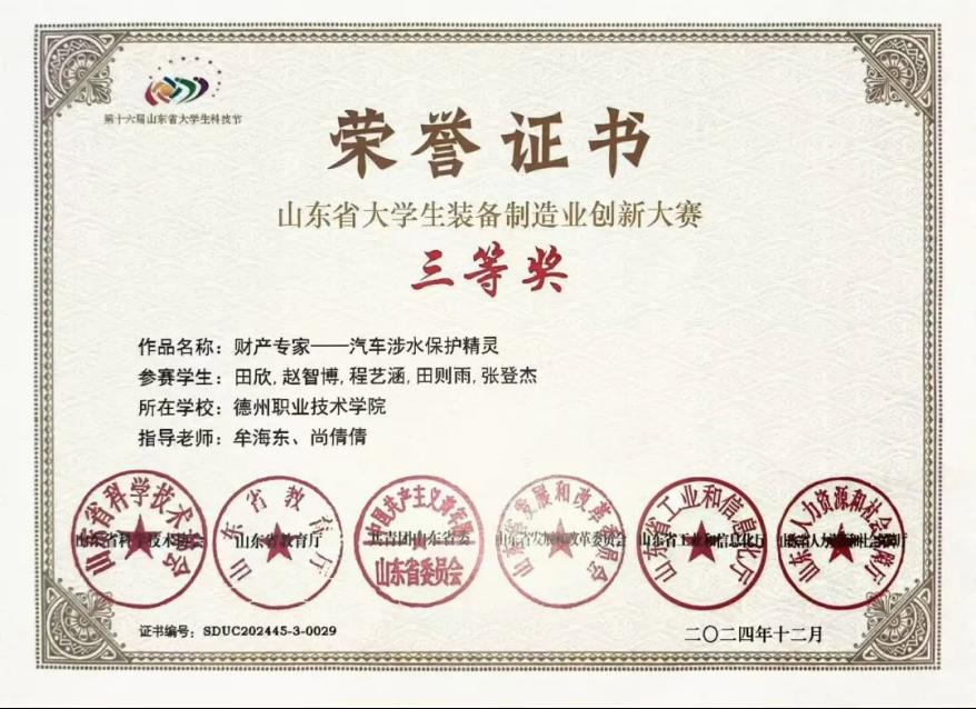 2024年荣获山东省大学生装备制造业创新大赛三等奖
