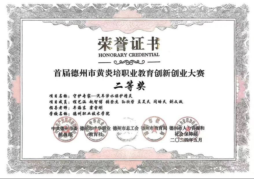 荣获首届德州市黄炎培职业教育创新创业大赛二等奖