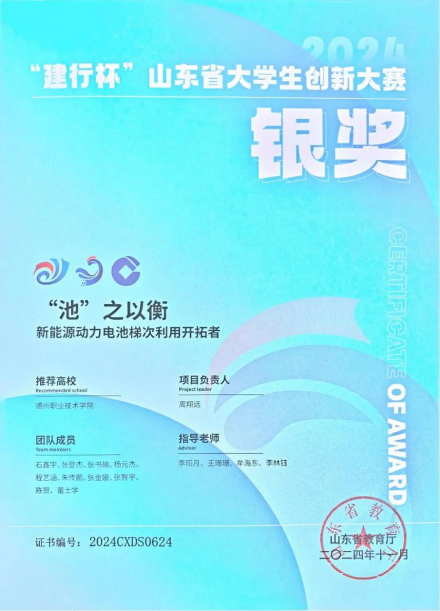 2024年荣获“建行杯”山东省大学生创新大赛银奖