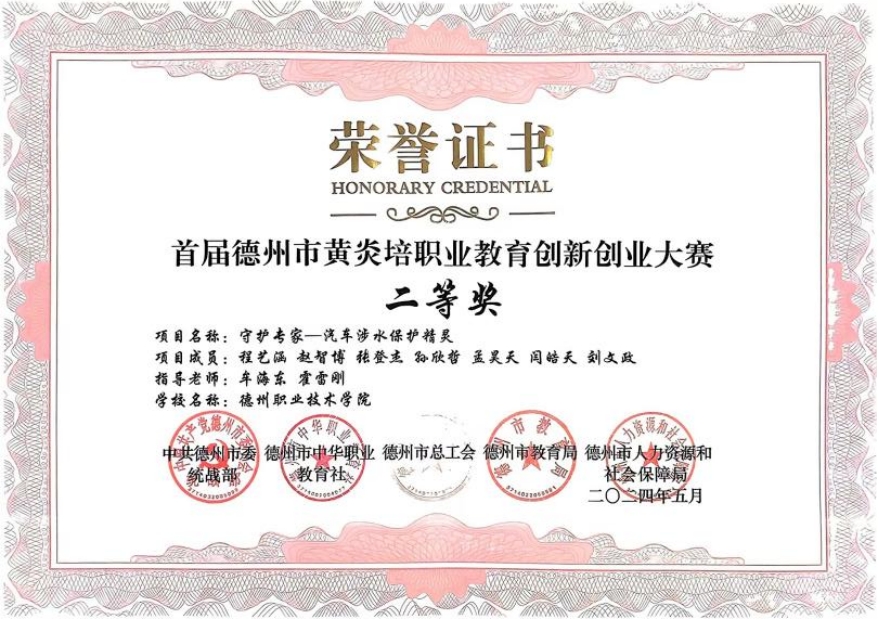 2024年参加德州市首届黄炎培创新创业大赛中获得“二等奖”。