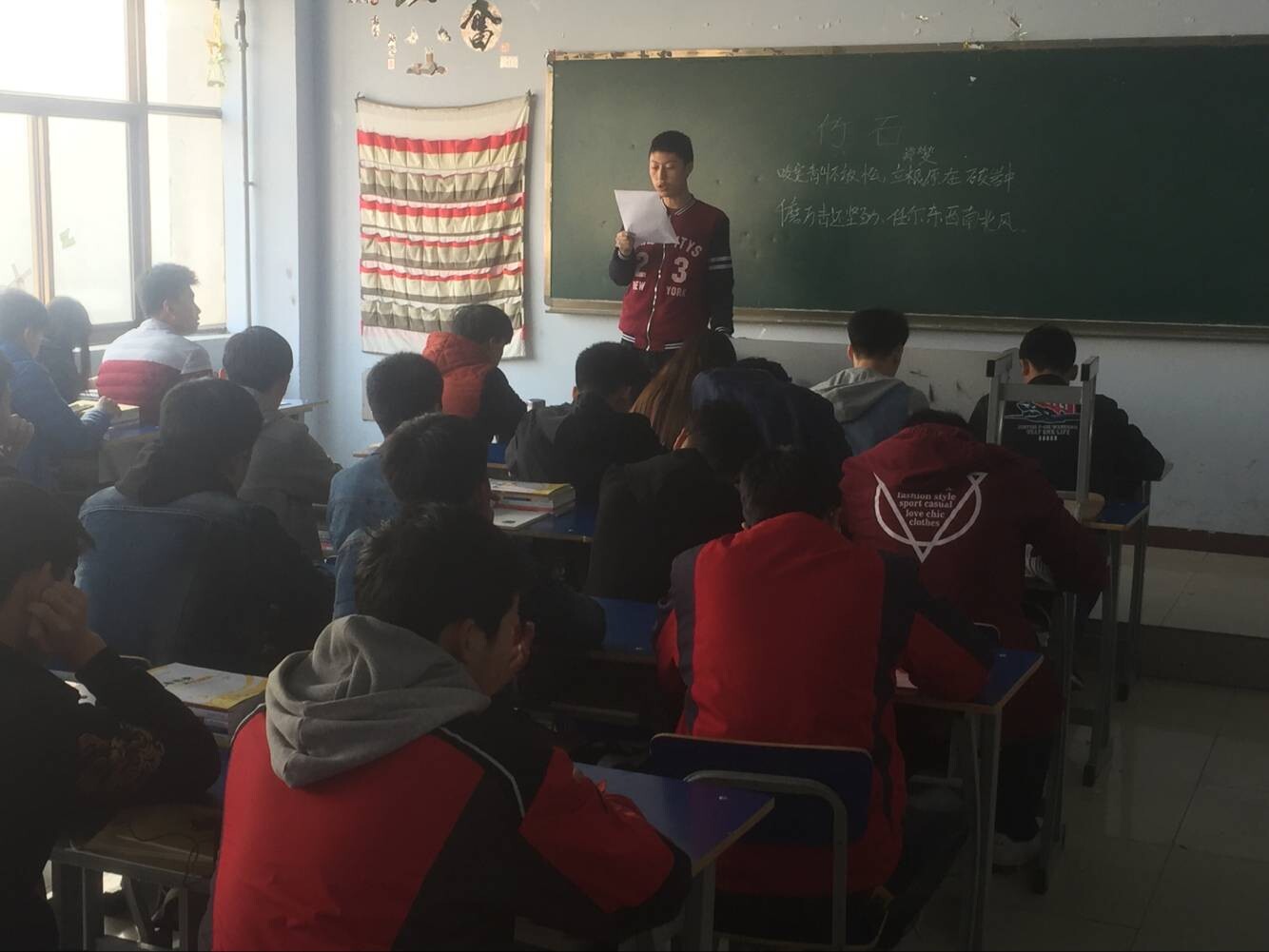 本周188改名taptap的班级开始了课前朗读诗词活动,每天上午7:50,全班学生起立,由学习委员领读,同学们集体朗读诗词。通过朗读,同学们一上午的学习氛围浓厚。
