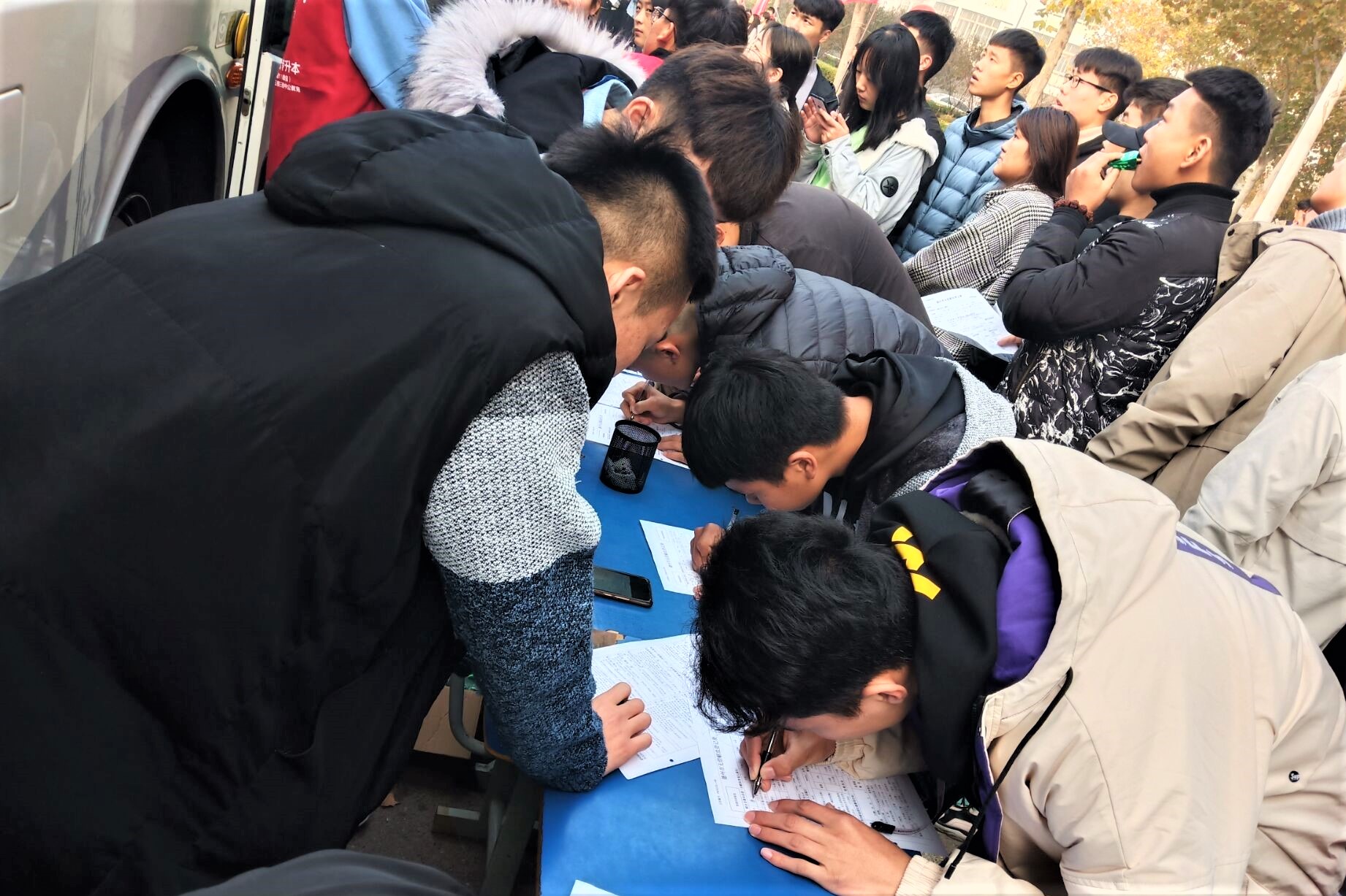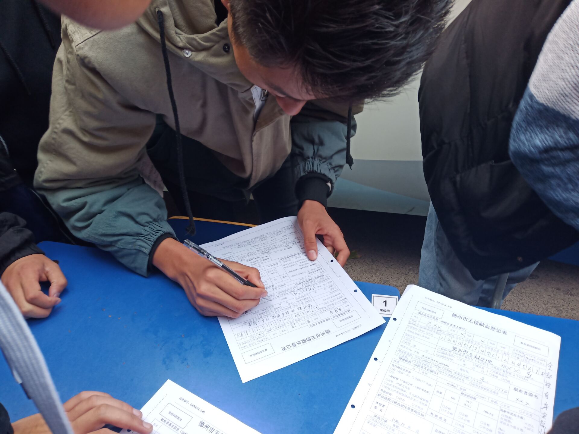 今天汽车系的志愿者们在这里进行了一项意义特殊的活动——无偿献血。
