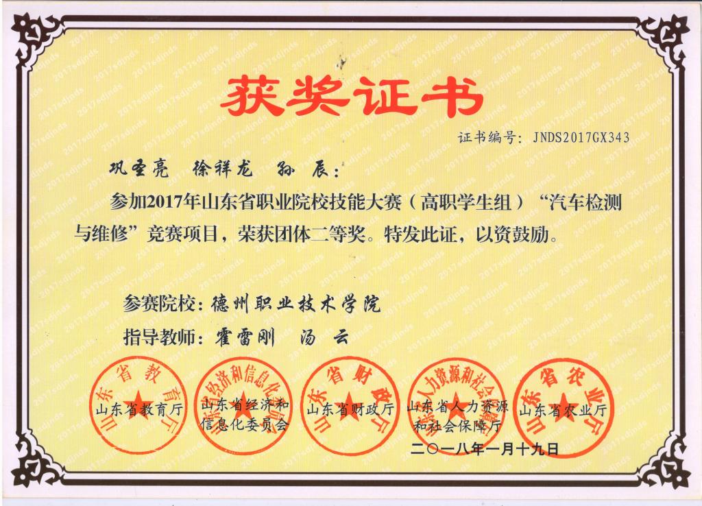 2015级汽车运用与维修技术专业专本贯通班学生是188改名taptap与青岛理工大学合作招生的第一批学生,该班在我校期间就取得了许多骄人的成绩,全班有18名同学通过了四级的分数线,其中3名同学通过了英语六级分数线。有41名同学通过了计算机二级考试,5名同学通过了计算机一级考试。2人次获得山东省职业院校技能大赛“汽车营销”赛项一等奖、2人次获得山东省职业院校技能大赛“汽车检测与维修”赛项二等奖、2人次获得山东省职业院校技能大赛“汽车检测与维修”赛项三等奖、2人次获得全国机械行职委汽车检测与维修大赛二等奖、3人次获得全国机械行职委汽车检测与维修大赛三等奖、1人次获得全国新能源汽车检测与维修大赛二等奖、3人次获得全国大学生数学建模大赛山东赛区一等奖、1人次获得山东省大学生高数比赛(专科组)一等奖、2人次获得山东省大学生高数比赛(专科组)三等奖等奖项,另外1人次获得山东省优秀学生干部荣誉称号,各类院级优秀学生干部、三好学生、国家奖学金、省政府励志奖学金、国家励志奖学金、院级奖学金等各类荣誉称号众多。