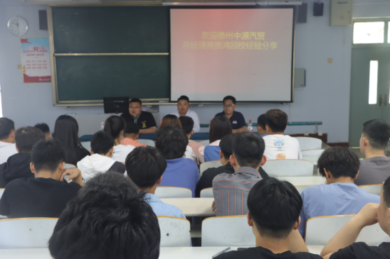 随后,燕贾鸿和我系2019级,2017级五年一贯制所有学生进行经验交流分享。燕贾鸿动情地把自己毕业离校后的求职经历、成长成才、工作现状和大家作了分享。以自己的亲身经历叙谈了工作以来的收获与心得,将自己的奋斗历程一一道来。他对工作的热情与奉献,对行业的热爱与钻研,展现了德职学子“崇德尚能,敬业乐群”的校训精神。对如何进行职业定位与规划作了精彩的阐述,希望汽车系学弟学妹们能够努力奋斗,珍惜当下,砥砺前行,不负韶华。