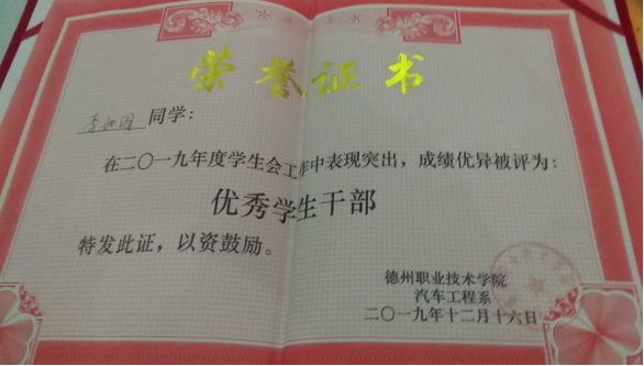 学生的本职工作是学习,只有不断汲取新的文化知识丰富自己的精神,才能提升自己,端正自己的思想,只有读万卷书才能达到自己行万里路的理想。大一学期,他综合成绩排名第一,被评为“校优秀学生”,并荣获校一等优秀大学生奖学金。