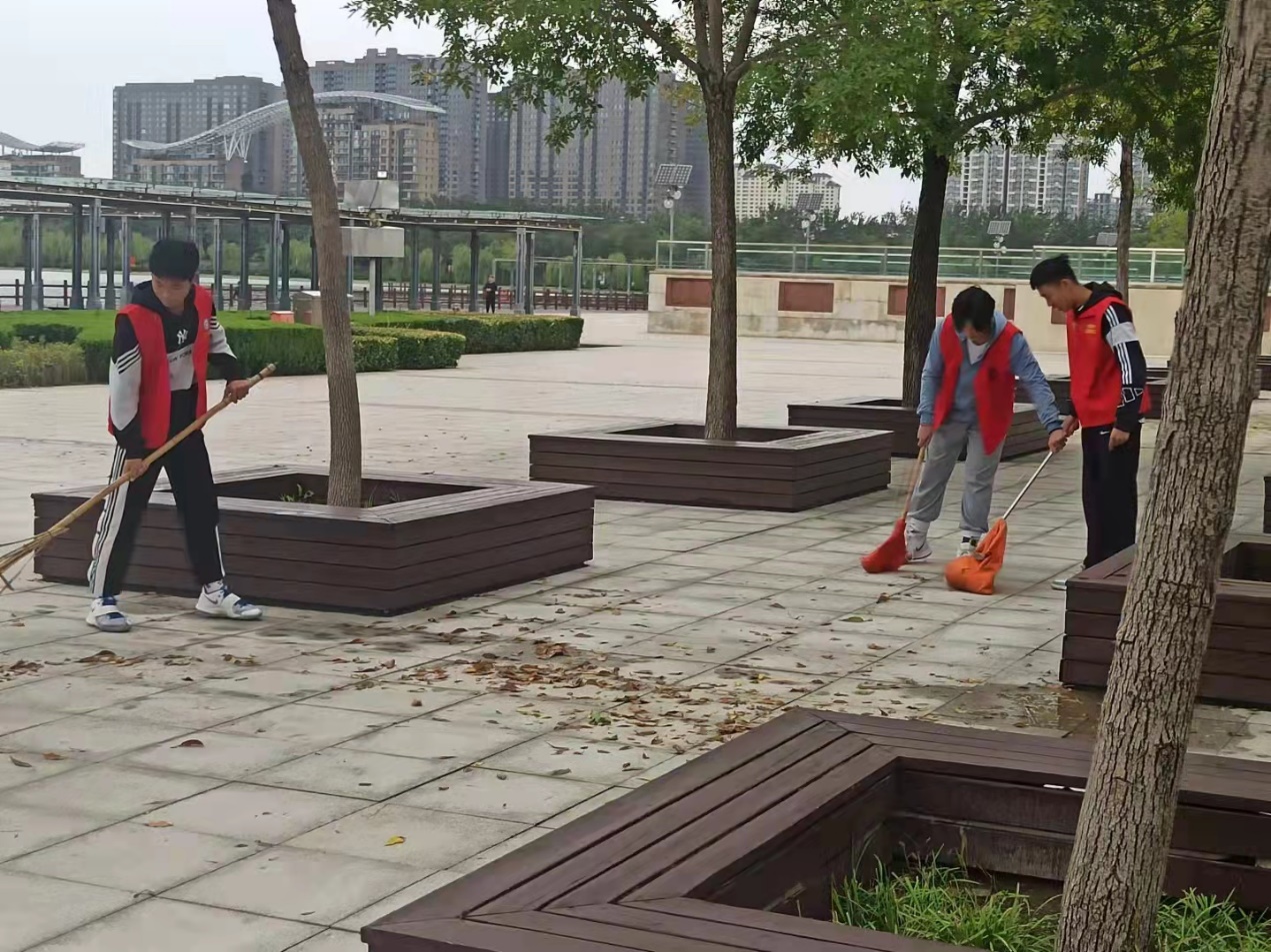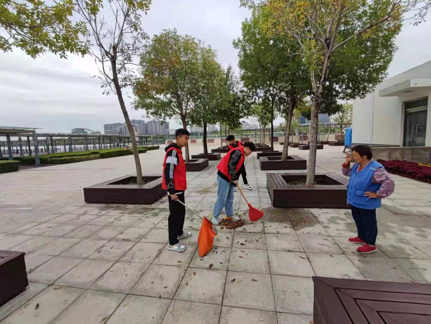 在公园观光区,孟凡浩、张乃鑫、杨雪纯、刘子帅等同学积极帮助景区的清洁阿姨打扫卫生,发挥了志愿者时刻为创城战斗的精神,受到了清洁阿姨的表扬。