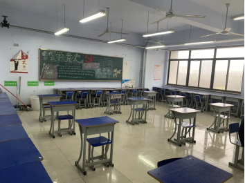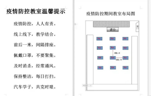 随后大家按照学校要求摆放桌椅板凳,每个教室保留12套桌椅,确保到教室自习人数不超过班级总人数三分之一;每个桌子前后左右间隔1.5米;严格控制同学们的接触距离,禁止聚集。