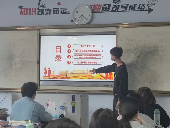 在活动中,我系所有班级的团支书制作了一系列精美的PPT,结合时事为同学们进行讲解,带领大家学习党的创新理论和历次大会精神,同学们纷纷表示,未来要以更加坚定地信念和朝气蓬勃的精神面貌奋力进取,用实际行动为二十大献礼,担当新使命,做新时代青年!