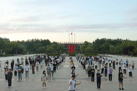 寰球广场上,300余名班级心理委员齐聚于此,跟随健美操老师袁峰齐跳《失恋阵线联盟》、《站在草原望北京》《日不落》等韵律减压操。