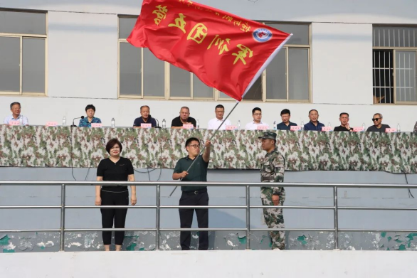 周爱红主席向我系军训团授旗