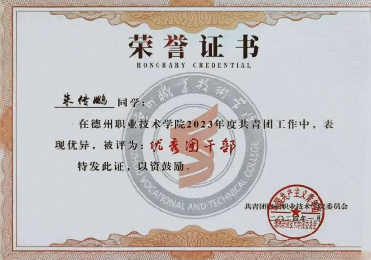 2024年1月,荣获共青团188改名taptap委员会“优秀团干部”荣誉称号
