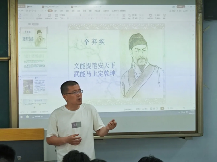 课堂上同学们聚精会神地聆听,积极与郭延鹏老师交流互动,深刻感悟辛弃疾的爱国精神与积极进取的人生态度。郭延鹏老师希望每一位学生都能从辛弃疾的生平事迹中汲取力量,将他的精神传承下去,为实现中华民族的伟大复兴而努力奋斗。