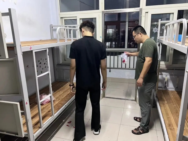在排查过程中,王猛科长对学生的报到情况、用电、用水、防火等安全隐患进行了解和排查,对发现的隐患进行现场整改,同时叮嘱同学们适时开窗通风,做好宿舍清洁,养成良好的生活习惯,并提醒同学们要尽快从假期的状态中调整过来,适应新的学习生活节奏。