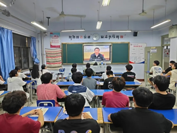 其次,各班级的团支书和团员观看视频,积极讨论,由学生团总支副书记孟昊天进行提问总结,2024级新生在班级观看视频领悟党的二十届三中全会精神。