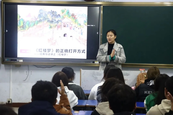 在讲座中,袁秀珍老师通过多媒体带领同学们共同观看并赏析了经典名著《红楼梦》,介绍了小说的背景以及作者曹雪芹的生平,深入探讨了小说的主题以及人物形象。