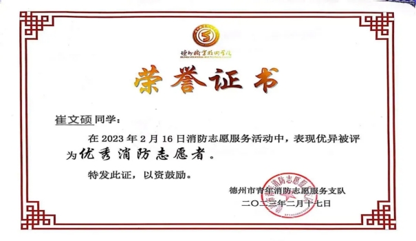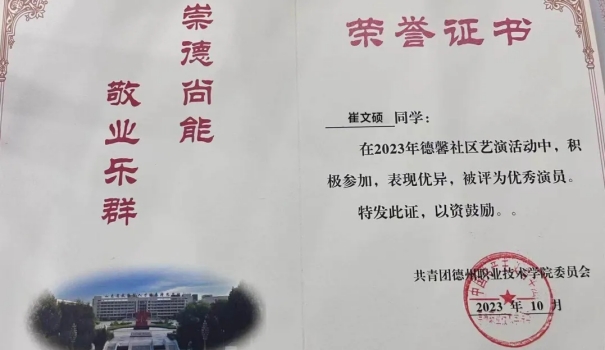 崔文硕自入校以来,努力提高自我能力,以全面发展作为目标,树立正确的三观,努力塑造成一个有专业功底和适应能力,有团队协作精神的有为青年,大一大二两个学期,他综合成绩在班内均排名第一,并获得国家励志奖学金,为实现个人价值打下坚实的基础。