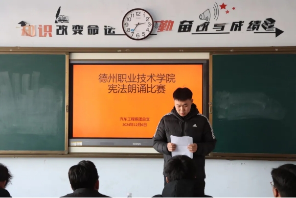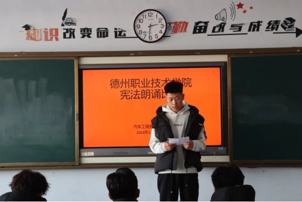 比赛过程中,选手们身姿挺拔,神情专注,他们以抑扬顿挫之声,将宪法条文演绎得入木三分,他们诉说着宪法赋予公民权利和义务,彰显宪法维护国家秩序之威,同学们随着朗诵者,感受宪法的深厚底蕴与崇高地位,不禁心潮起伏,对宪法的敬畏油然而生。