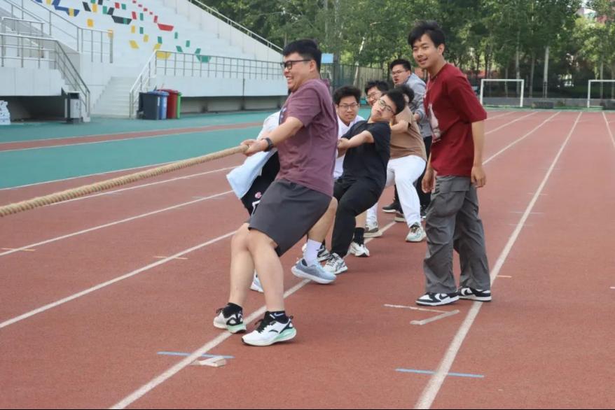 在比赛过程中,各队伍展现出了极高的团队协作精神,他们整齐划一地喊着口号,随着口号的节奏,身体有节奏地向后拉扯,每一次的用力,都凝聚着队员们的信任与默契,当绳子一点点向自己一方移动时,他们的脸上洋溢着自信与喜悦;而当局势陷入僵持时,他们也没有丝毫的慌乱,依然咬紧牙关,坚持不懈。场边的同学们也情绪高涨,他们挥舞着手中的标语牌,大声呐喊助威,为自己班级的队伍加油鼓劲。
