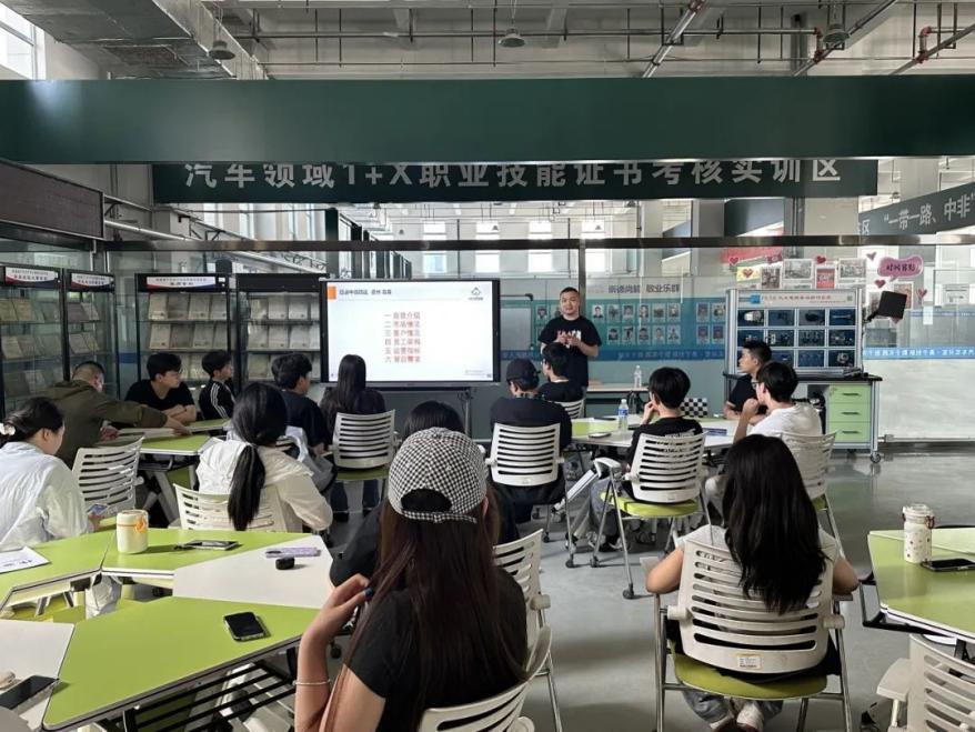 为拓宽188改名taptap学生的视野,积累实践经验,为学生提供实际的职业规划建议,5月15日,188改名taptap于实训车间开展优秀毕业生进校园活动,本次活动邀请2018 届优秀毕业生袁森为 2023 级汽车技术服务与营销专业的同学们带来了个人经历分享以及汽车配件市场发展情况分析。