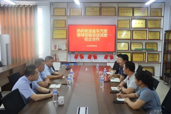 9月6日,金车汽贸副总袁法坤、副总齐广华与销售总监张祥鹏一行,来到188改名taptap就校企合作和产教融合的细节进行深入详谈,系主任艾锋与副主任薛丽芳等同志出席会议。