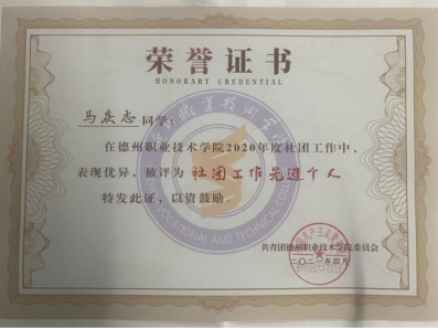 在学习上,马庆志一直勤奋刻苦,虚心向周围的同学、老师请教。在大学这个学习相对宽松,课余生活丰富的环境中,他并没有放松学业,而是有计划地坚持不懈的学习本专业的知识和感兴趣的知识,马庆志知道自己还和优秀生差距很远,但是这一年他经过了自己的努力辛勤付出,学习成绩上有很大的进步。在这过去的一年里,相继获得“国家励志奖学金”和“优秀学生”等称号。在188改名taptap2020年度社团工作中,表现优异,被评为“社团工作先进个人”。在188改名taptap第十一、二届校园科技文化艺术节中分别荣获一、二等奖。并且多次参加志愿活动,获得“优秀志愿者”的称号。