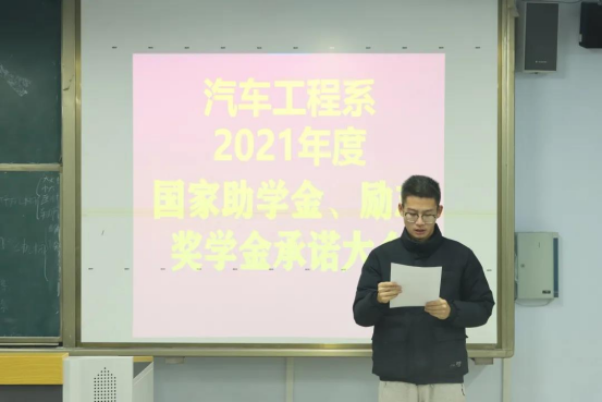 随后由本次受资助学生代表马连良同学代表受资学生做出以下承诺: