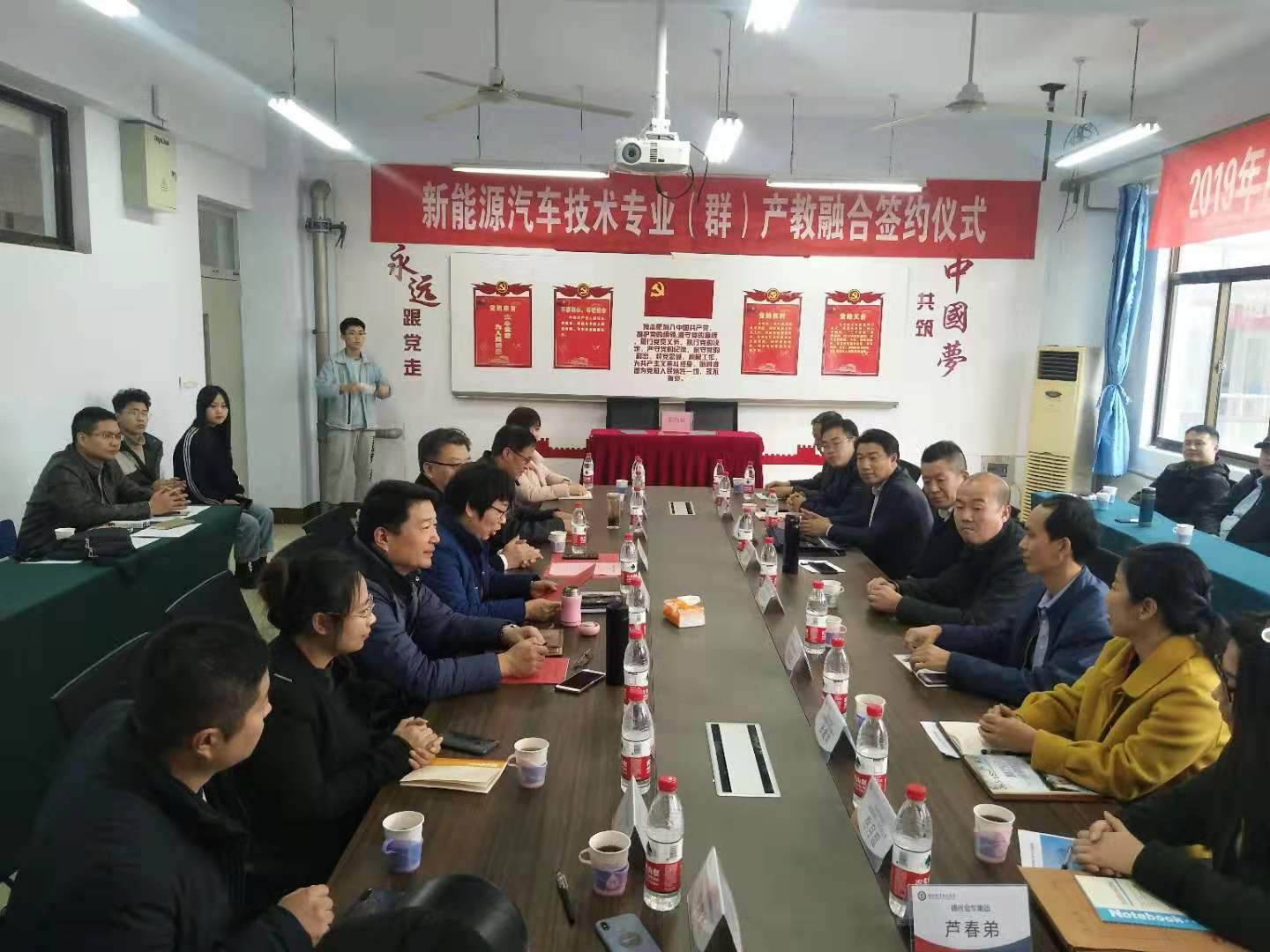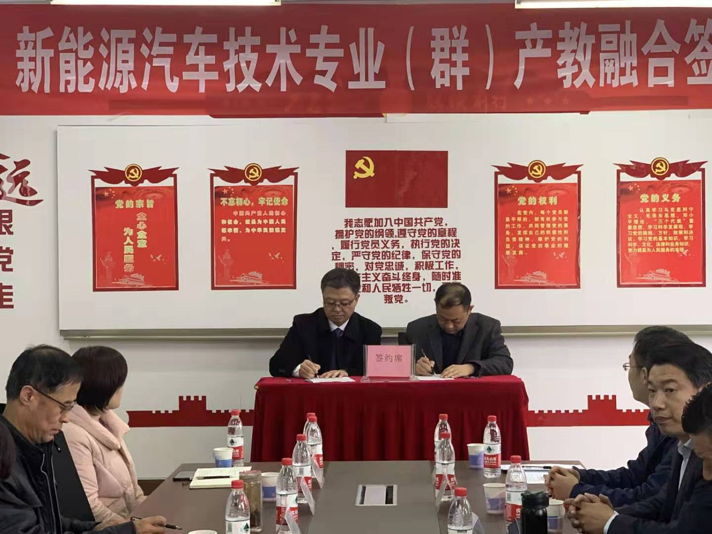 其次,举行了新能源汽车技术专业(群)产教融合签约仪式。签约的企业有山东安智教学设备有限公司、江苏康众汽配有限公司、山东富路勇士汽车有限公司、山东丽驰新能源汽车制造有限公司、山东热骋汽车技术有限公司。