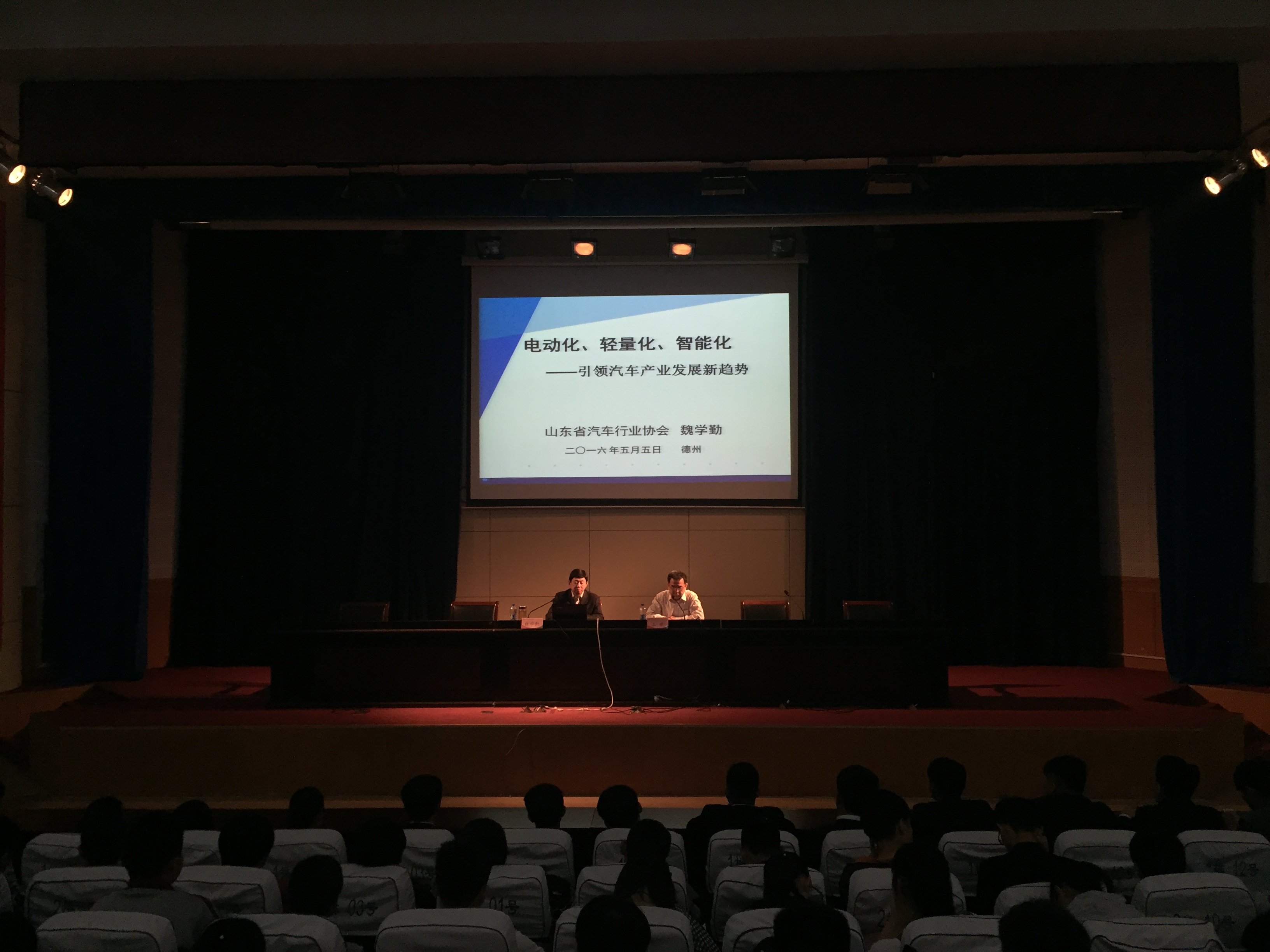 从大处着手,魏学勤由汽车发展历史引出“十一五”以来我国汽车行业取得的优异成绩、我国汽车行业发展产销高速增长、自主品牌成果显著、产业集中度提高等特点和发展中面临的环境污染、能源压力、交通安全等问题作了深入浅出的分析、阐述,赢得在场师生阵阵掌声。放眼省内,山东省汽车工业从无到有,由小到大,汽车产量和保有量增长迅速,成就喜人。当谈起过去十年山东省汽车行业发展时,魏学勤对取得的成就如数家珍,在展望汽车行业形势时,魏学勤结合历年汽车产销情况、综合经济指标等方面做出系统分析,对当今行业发展利弊做出客观评价。与此同时,他结合“十八大”后的政策导向提出,改善当今环境已成主流趋势,作为汽车人,要关注汽车服务业,把握节能、环保、安全这一汽车产业发展的永恒主题,促进汽车与社会和谐发展。
