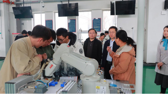 在梁强副院长的陪同下,两位专家参观了我校通慧桥、砚池和中华德能鼎,在各专业讲解员的介绍下参观了现代智能制造实训平台,现代工业机器人实训平台,现代汽车实训平台。