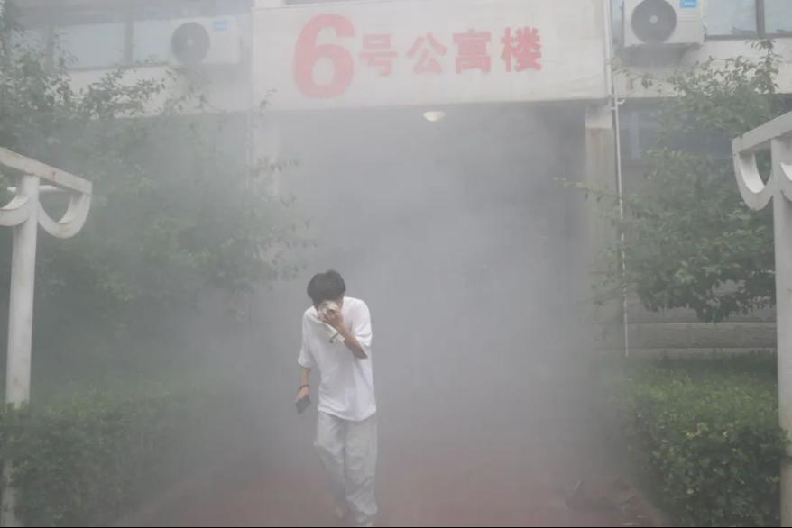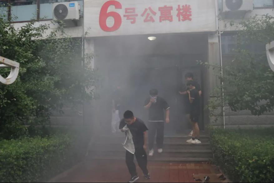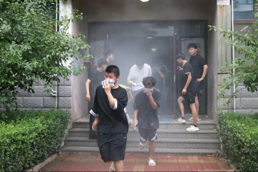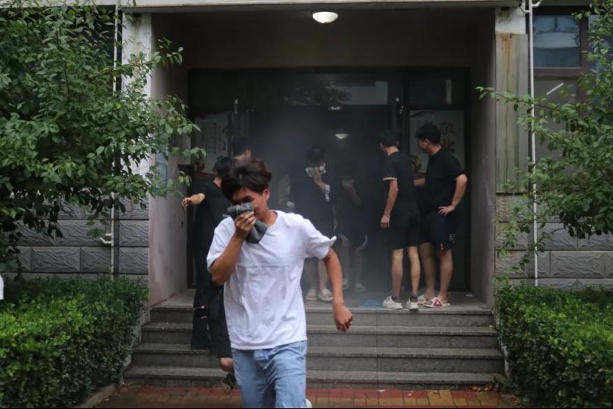 随着警报声响起,学生们迅速按照既定的逃生路线,用湿毛巾捂住口鼻,低姿弯腰快速撤离。整个过程中,学生们表现出了良好的秩序和冷静的应对能力。王猛老师和我系学生干部在楼层间引导学生疏散,确保没有学生遗漏。