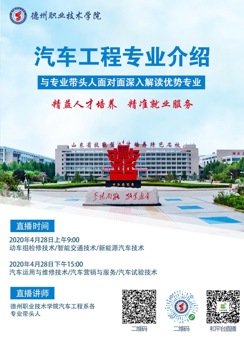 下午15点为汽车运用技术、汽车营销与服务、汽车试验技术专业直播