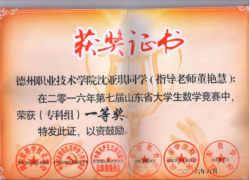 2016年获山东省职业院校技能大赛高职组“汽车营销”一等奖