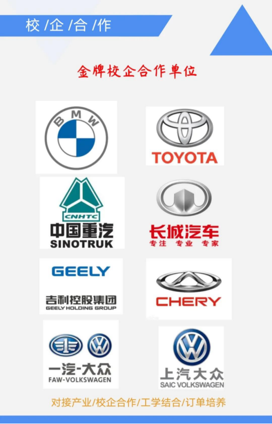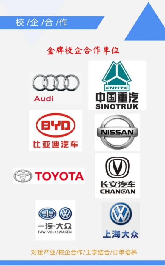 毕业生职业规划多选择,汽车整车及零部件生产制造、工艺管理、研发试验、质量检验等工作岗位薪金优厚。专升本学历提升贯通。